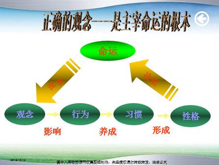 气球能不能升到空中,不在它外表的颜色,而在于它里边充的是什么气;一个人能不能成功,不在于皮肤的颜色,也不在乎他的家庭背景、年龄、学历,而在于他有没有一股积极向上的精神。 马丁.路德金 最常见同时也是代价最高昂的一个错误,是认为成功有赖于某种天才,基于某种魔力,某些我们不具备的东西. 马尔比 马布科 观念 行为 习惯 性格 命运 决定 加 深 影响 养成 形成 成功的理念 一、坚持到底直到成功 二十一岁,做生意失败 二十二岁,角逐美国州议员落选 二十四岁时,做生意再度失败 二十六岁时,他的妻子离开人间 二十七岁时,一度精神崩溃 三十四岁时,角逐美国联邦众议员再度落选 四十五岁时,角逐美国联邦众议员再度落选 四十七岁时,提名美国副总统落选 四十九岁时,角逐美国联邦众议员再度落选 五十二岁时,当选美国第十六任总统 林肯