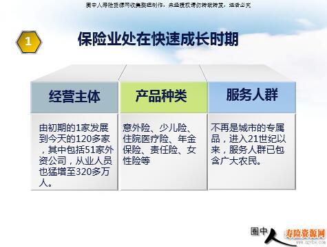 课程内容 保险是处在快速成长的行业 保险为经济发展、社会稳定保驾护航 保险是国家大力支持的行业 保险是发展前景广阔的行业
