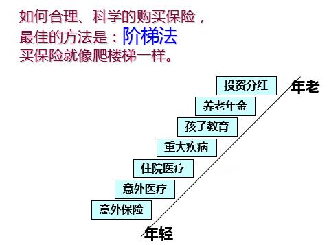 如何购买保险? 如何合理、科学的购买保险, 最佳的方法是:阶梯法 买保险就像爬楼梯一样。