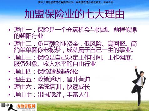 我要做保险 金饭碗 要改变命运,先改变自己 人生不断面临着选择,机会来临时,您是否清楚自己要走向哪里? 您今天站在哪里并不重要,但是您下一步走向哪里却是很重要。如果您以前没有规划过自己的目标,那么从现在开始认识自己,为自己做一个切实可行的职业生涯规划吧。 通常职业生涯方向的选择需要考虑以下三个问题 我想往哪方面发展? 我能往哪方面发展? 我可以往哪方面发展? 保险是什么,能解决什么问题? 保险代表着人类的生存智慧。保险意味着博爱、慈善,慷慨、智慧、道德、理性、勇敢、亲情、高尚和美好,保险维系到整个人类社会,因为境遇的不平等,人类的区别变得突出而持久。保险的出现正有效地润滑和缓解着这种尖锐的难以接受的区别给人类造成的不适应,在危险和风暴即将来临时,帮助我们尽可能地做好“防备工作” 加盟保险业的七大理由 理由一:保险是一个充满机会与挑战、前程似锦的朝阳行业 理由二:免巨额创业资金,低风险、高回报。简简单单圆你老板梦,成就属于自己一生的事业。 理由三:保险是自己决定工作时间、工作强度、服务对象、收入水平的自由行业 理由四:保险越做越轻松 理由五:政策透明,晋升有道 理由六:系统培训,快速成长 理由七:出国旅游,丰富人生 选择保险 选择成功 保险业在政策上的春天已经到来 保险业在市场上的春天已经到来 保险,捧在手里的“金饭碗” 保险,为你的财富带来迅速增长 保险为你带来更丰厚的回报 保险,拥有长久的职业安全性 职业安全,是选择职业的基本因素 保险是职业安全、行业优良的职业 加盟保险业,你将得到什么 具有崇高的工作价值,利国利民,受人尊敬! 具有广阔的市场前景,永远欣欣向荣! 具有合理的报酬来肯定工作业绩! 具有畅通的晋升渠道,不会埋没才能! 具有完善的培训体系,是你能够持续成长! 具有浓厚的企业文化氛围,让你有归属感! 具有弹性的工作时间,可以自主决定劳动强度! 具有优越的激励机制,能够快速实现自我价值! 我要做保险