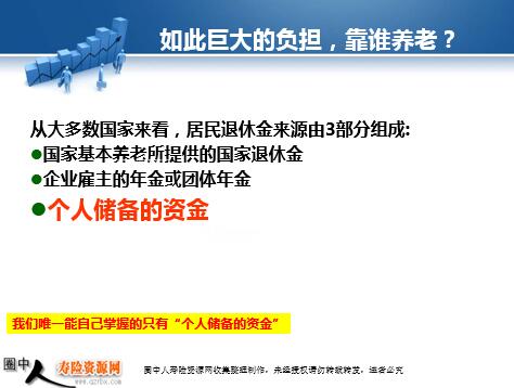 中国财富市场发展惊人 波士顿称中国百万美元资产家庭数已位居全球第三 中国的国情决定了银行在老百姓心中的地位。即使是在中国金融业长足发展的当前,银行仍旧是“安全”、“信任”、“依赖”的代名词。目前理财方式已多元化,但从投资心理看,安全增值是第一位的。老百姓有闲钱还是首选存入银行。 美国商务部日前公布的数据显示,09年1月份美国个人储蓄率升至5%,创1995年以来的最高点。一美元收入中就有五美分被存进了银行。 百姓有闲钱首选存入银行 美国人也开始“中国式”储蓄 2008年,中国家庭储蓄率达28.8%。 据央行最新公布的2008年金融体系运行数据显示,居民户人民币存款增加4.63万亿元,与2007年相比,增长达到三倍。 2009年,中国城乡居民存款余额超过26万亿元人民币。 “预防性”储蓄知多少 有钱不敢花的痛苦 养老、子女教育、医疗,人称新“三座大山”。使人们不得不削减开支,降低生活标准,大量、长期地储蓄。 时代发展,消费升级。 一个30岁的人,在60岁退休前的花销: 【买房居住】买房+装修+30年物业水电供暖…100万 【购车养车】8万×3辆 + 1000×12×30年……60万 【培养子女】出生至大学毕业…………………30万 【日常消费】2000×12月×30年 ……… 72万 【父母/人情】500×2×12月×30年 ………36万 算一笔账: 普通生活的成本 (未考虑通货膨胀) 直逼300万! 普通生活,我们需要多少钱? 如果60岁退休,活至88岁,夫妻两人退休后生活28年,一天三顿饭钱的花费: 10元×3顿×365天×28年×2人= 613200元 如果考虑物价上涨因素,假设通货膨胀率为5%,30年后同样一顿饭要花费: 10元×(1+5%)30≈43元,每顿饭按40元算, 20年下来,仅吃饭将花费 40元×3顿× 365天×28年×2人=? 惊人的账单: 退休后的饭钱 惊人的养老帐单 来源: 2009年11月26日 北京退休需要315万 考虑通货膨胀率和国家经济的发展,一个现在每年在北京消费支出大约5万元的人,60岁退休到75岁死亡之前,如果退休后不改变生活品质,大约需要315万元,如果提前退休,比如55岁就需要至少420万元。