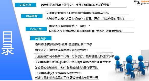 2017年3月15日 星期四 每日新闻速递 目录 时政热点 财经新闻 行业公司 民生百态 养老和医改再啃“硬骨头” 社保关键领域改革或迎突破 卫计委:农村贫困人口住院医疗费用报销将提至90% 大城市租房常住人口有望落户!教育、医疗、住房也将有保障! 国家医疗保障局探路“三保合一” 600多万买的保险老人却提前退保 靠“利息”做宣传合规吗 著名物理学家斯蒂芬-威廉-霍金去世 享年76岁 重大变化!你的医保将由这个新机构管理! 儿童看病如何不扎堆?代表:分级诊疗、提升基层儿科医疗水平 代表委员建言师资队伍建设,幼儿园及乡村教师待遇最受关注 发改委放宽城市落户条件 鼓励城市群内居住证互认 代表委员建议加大落实租购同权力度 代表:除夕前大家无心工作 建议延长春节假至十天 时政热点 养老和医改再啃“硬骨头” 社保关键领域改革或迎突破 2018-03-14 04:48 来源:经济参考报 在深化基础性关键领域改革中,养老和医疗改革是民生关注的热点和焦点所在。记者获悉,2018年,作为二次分配的社保政策性待遇水平仍将稳步提高。在此基础上,还将深化养老保险制度改革,建立企业职工基本养老保险基金中央调剂制度。深化公立医院综合改革,协调推进医疗价格、人事薪酬、药品流通、医保支付改革,提高医疗卫生质量,下大力气解决群众看病就医难题。两会代表和委员表示,基本养老保险基金中央调剂制度有助于解决养老保险制度中最主要问题——统筹层次低的问题。公立医院改革又是医疗卫生制度改革的核心。开啃养老和医疗改革中最硬的这两块骨头,意味着社保关键领域改革有望在今年迎来较大突破。 财经新闻 卫计委:农村贫困人口住院医疗费用报销将提至90% 2018年03月14日 02:00:18 来源:新京报 在打赢脱贫攻坚战中,健康扶贫成为重要发力点之一。国家卫计委财务司司长何锦国日前表示,卫计委将坚持和完善健康扶贫“三个一批”措施, 继续加大攻坚力度,逐步建立长效机制,从制度上确保贫困人口不再因病陷入绝对贫困。其中,全面建立贫困人口补充医疗保障机制被放在首位。据了解,下一步农村贫困人口住院医疗费用个人实际报销比例提高到90%左右,此外,妇女两癌、肺癌也将纳入大病专项救治。 ...........