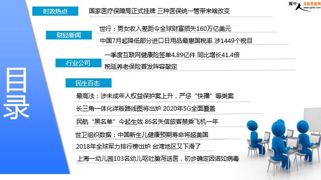 每日新闻速递2018年6月2日 星期六目录时政热点财经新闻行业公司民生百态国家医疗保障局正式挂牌 三种医保统一管带来啥改变世行:男女收入差距令全球财富损失160万亿美元中国7月起降低部分进口日用品最惠国税率 涉1449个税目一季度互联网健康险签单4.89亿件 同比增长41.4倍税延养老保险首发阵容敲定最高法:涉未成年人权益保护案上升,严惩“快播”等类案长三角一体化详版路线图将出炉 2020年5G全面覆盖民航“黑名单”今起生效 86名失信旅客禁乘飞机一年世卫组织数据:中国新生儿健康预期寿命将超美国2018年全球军力排行榜出炉 台湾地区又下滑了上海一幼儿园103名幼儿呕吐腹泻送医,初步确定因诺如病毒时政热点国家医疗保障局正式挂牌 三种医保统一管带来啥改变2018-06-01 06:44 来源:人民日报5月31日上午,国家医保局正式挂牌。根据国务院改革方案,将人力资源和社会保障部的城镇职工和城镇居民基本医疗保险、生育保险职责,国家卫生和计划生育委员会的新型农村合作医疗职责,国家发展和改革委员会的药品和医疗服务价格管理职责,民政部的医疗救助职责整合,组建国家医疗保障局,作为国务院直属机构。人民群众看病报销、异地结算是不是报得更多、更方便?记者采访了权威专家,进行解读。将3种基本医保统一到一个部门管理,业界期盼已久。专家普遍认为,这将有利于促进公平,让每个人都在同一制度下享受保障。财经新闻世行:男女收入差距令全球财富损失160万亿美元2018-06-01 11:19 来源:新华网世界银行(下称“世行”)在最其最新报告《未释放的潜力:男女收入不平等的高昂代价》中指出,男女终身收入差距造成全球财富损失高达160万亿美元,相当于所研究的141个国家人均损失23620美元。这项研究是在七国集团(G7)峰会(6月8日~9日)召开前夕发布的,本届峰会由加拿大担任轮值主席国,加拿大承诺在其担任轮值主席国期间保证将男女平等和女性赋权问题纳入所有G7峰会的主题、活动和倡议之中,而该报告则主要研究了两性不平等在人力资本方面造成的经济损失。