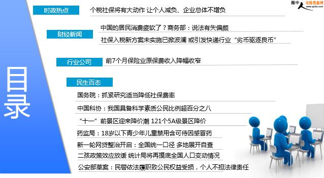 每日新闻速递 2018年9月8日 星期六 目录 时政热点 财经新闻 行业公司 民生百态 个税社保将有大动作 让个人减负、企业总体不增负 中国的居民消费疲软了?商务部:说法有失偏颇 社保入税新方案未实施已掀波澜 或引发快递行业“劣币驱逐良币” 前7个月保险业原保费收入降幅收窄 国务院:抓紧研究适当降低社保费率 中国科协:我国具备科学素质公民比例超百分之八 “十一”前景区迎来降价潮 121个5A级景区降价 药监局:18岁以下青少年儿童禁用含可待因感冒药 新一轮网贷整治开启:全国统一口径 多地展开自查 二孩政策效应放缓 统计局将再摸底全国人口变动情况 公安部草案:民警依法履职致公民权益受损,个人不担法律责任 时政热点 个税社保将有大动作 让个人减负、企业总体不增负 2018-09-07 00:32:00 来源:中国新闻网 个税和社保又将有大动作。9月6日召开的国务院常务会议确定落实新修订的个税法的配套措施,为广大群众减负;同时又提出,抓紧研究适当降低社保费率,确保总体上不增加企业负担。换言之,个人减负、企业总体不增负,将影响每个人的钱袋子。这次会议提出,要确保10月1日起如期将个税基本减除费用标准由3500元提高到5000元并适用新税率表。个税基本减除费用标准就是俗称的个税起征点。此次个税法修订的一大变化是,将原先分别计税的工资、薪金所得,劳务报酬所得,稿酬所得和特许权使用费所得进行综合征税,这4项综合所得的个税起征点提高到5000元/月(6万元/年)。 财经新闻 中国的居民消费疲软了?商务部:说法有失偏颇 2018-09-07 10:20 来源:中国商务 今年以来,我国社会消费品零售总额增速与往年同期相比明显放缓。数据显示,除3月份社会消费品零售总额同比增速为10.1%外,其余月份的同比增速均为个位数,与往年两位数的增速形成了鲜明对比。有人认为,这是“消费降级”的表现。更有网友把某品牌榨菜利润大幅增长、某网购平台“走红”作为“消费降级”的“有力证据”。事实是这样吗?相关部门并不认同。高峰明确表示,“关于‘消费降级’的说法,是失之偏颇的。”国家统计局和国家发展改革委此前也曾多次强调,目前消费增速放缓是短期波动,从长期来看,消费结构升级是发展大势。
