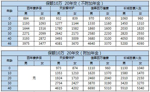 2018百年天安信泰长城健康险对比表.rar