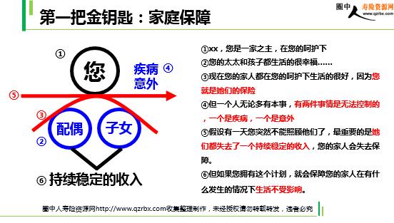 被遗忘的保额 面对客户时多以理论性、概念性逻辑为主,缺乏简而有力切入点,难以触及客户痛点 缺乏强有力理由来说服客户,难以将家庭、责任等因素转化为具体的保费 业务员多根据自身判断为客户设计计划书,分析客户需求多根据经验缺乏理论依据 列举主顾名单逐一接触拜访或直接邀约产会 接触邀约 产品植入 讲解理念 促成 我们队伍的现状 人情保单做的明明白白 带病保单不做 非家庭经济支柱保单不做 三大纪律 1、你为客户设计的保额是多少? 2、客户为你设计的保额满意吗? 3、客户知道自己需要的保额是多少吗? 4、客户知道自己的保障是多少吗? 5、客户有没有计划弥补这个缺口? 6、有没有提示子女教育问题? 7、有没有提示客户养老问题? 8、有没有要求客户做转介绍? 如何计算客户的保障需求?如何寻找客户的保障缺口? 八项注意 我们的目标 保额销售:是运用人生规划图和需求分析表,对客户做观念导入并计算保障缺口,从而激发客户的保险需求并约定下次递送建议书的过程。