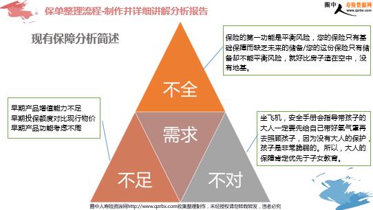 营销技能 之 “保单整理” 目 录 COMPANY 背景介绍 保单整理流程 意义及功用 完善保障计划 PART 01 背 景 介 绍 背景介绍-客户需求 刘先生家收入稳定,也比较认可保险。家人的保单大约得有十几份。多家保险公司的都有。意外、重疾、医疗、理财方面的全都包括了。本以为保障全了就省心了,不料烦恼也随之而来。 被保险人乱 刘先生的保单含xx的,xx的,泰康的,xx的,xx的,其他公司的还有。保单摞起来老高。某天他想找出妻子的那份住院医疗险,翻了好久才翻到,真的是太麻烦。 保险分类乱 具体的每家保险公司的产品都保什么,哪个是意外险,哪个是寿险,哪个是养老险,哪个是理财,保障内容能不能叠加,要怎么个领取法,能领取多少?这么多保单,他想想就觉得头疼。 交费期乱 总能接到保险公司提示缴费的电话。有时候难得闲下来,还得分心去想,这个月的保险是不是要交了。搬出那一摞保单来,挨个的再查交费日期,看着就心累。 不划算 保险责任重复该减的没减,旧保单费率太高,没有及时更新最新的保障全费率低的产品。 背景介绍-客户需求 其实,这种烦恼很好解决。您只需要做一件事情:家庭保单整理