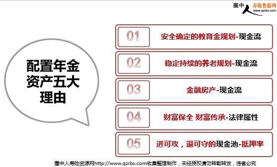 年金保险拓客与销售经验分享 初心是什么 无论何时何地,因为何种原因发生,全家都有稳稳的幸福 贵族保单--年金资产 指在被保险人生存期间,保险人按照合同约定的金额、方式,在预定的时间内开始定期、定额地向被保险人给付保险金的保险产品。事实上是一种以被保险人的生存为给付条件的人寿保险,生存保险金的给付通常按照年度、月度周期给付的方式。 现金流资产 配置的思维 年金没有房产收益高,但不用投入那么多、政策那么无常年金没有股票收益高,但收益不会缩水,本金不会亏损年金没有银行存款灵活,但能锁定无风险收益年金没有银行理财期限短,但急需时可以贷款年金没有P2P收益高,但是它有国家监管,无风险年金资产低调、法律性、专属所以非常适合做家庭安全垫的配置 沉下来,而不是飘着 平衡型家庭理财“金五角”模型 五个理财金账户 目标:维持基本生活费用要点:3-6月的日常开支,安全性/流动性渠道:现金/活期/短期理财/货币式基金/现金价值 现金账户 安全账户 目标:解决养老/教育资金要点:专款专用/保证收益/流动性渠道:定期储蓄/债券/储蓄型保险 /房租/固收类信托 信用账户 目标:解决急用时的现金要点:灵活性/及时性/保障性渠道:高额信用卡 风险账户 目标:快速提高生活品质要点:风险较高且需自负/收益性渠道:股票/基金/投连/PE/房地产 保障账户