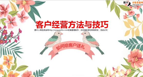 客户经营方法与技巧 如何给客户送礼 引言 如何送礼 送礼技巧 送礼禁忌 送花礼仪 目录 一、如何送礼 一、如何送礼 给谁送 很多朋友一提到送礼马上想到的送什么,花多少钱合适……其实在送礼之前首先要做的是拉一份清单,把需要送礼的人一一列出。详细的清单既可以让销售人员对要送礼人的情况一目了然又可以避免疏忽遗漏。 一、如何送礼 送什么 一、如何送礼 送什么 一、如何送礼 何时送 二、送礼技巧 技巧一 一份公,一份私 给重点客户送礼时,一般要准备两份礼品:一份是公、一份是私。私人礼品非常重要,因为它代表了个人对客户的心意。建议可以依据八九十来挑选礼品,由于是个人心意礼可以轻,但一定要是最花费心思的。