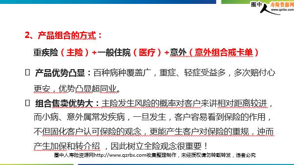 “全险观” 助我批发健康险保单 持续“全险观”,做最好的自己 是找到营销感觉的钥匙 家里有生意,成了我不常出勤的理由由于降级,没面子,不愿意来公司没有保单,不愿来公司,不知道如何面对大家扣差勤也无所谓 客户的信赖,我必须克服困难走出家门,不断充电面子是自己赚出来的,不是别人给出来的不学习,不拜访,客户怎敢把保单交由你打理?天天全勤 是赢得客户放心“你还在”的根本 客户的心理: 买保险前,厌烦你频繁打扰;买保险后,最怕见不到你。我已隐藏太久,虽没勇气和客户再谈保险,但服务,一天都不差事。如今,因服务而使过往的关系还在,多频次的出现,让客户格外开心。 服务带来客户强烈的信任 每起理赔,仍报案、探服、提示准备赔付资料、病例提取、提交理赔申请到开车带客户到公司验伤等全部实现一条龙服务,理赔款到账信息第一时间转告给客户,让客户无不感动,信任大增。 时间 2018理赔 意外卡 2次 住院医疗 2次 百万医疗 3次 “全险观”,做最好的自己 全险观:即为客户设计健庩保障 计划时,要从保障、重疾、医疗、 意外卡单四方面入手的原则。杜 绝单一购买主险的“裸单”保单 设计方法。 1. 全面发挥保险姓“保”的功能; 2. 代理人与业化销售的充分体现; 3. 通过医疗理赔,让客户从细微之处体验保险的重要性; 感受保险公司信守承诺、用合同效力打消客户的猜测, 用事实粉碎保险理赔难的不实之言。
