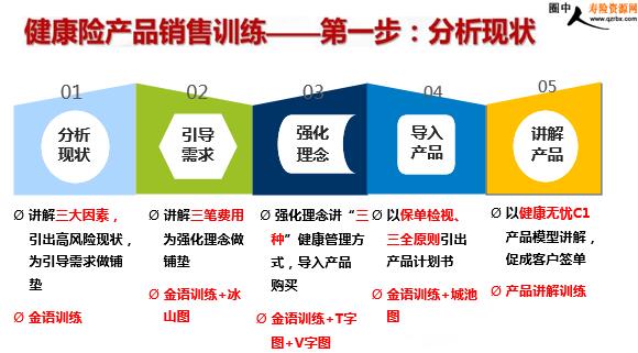 是为了让客户的潜在需求迅 速转化为实际购买动作,而对产品理念和功 能进行的有效表达。 理念让销售更专业、更高效! 01 分析现状 02 引导需求 03 强化理念 04 导入产品 05 讲解产品 第一步:金语讲解 要求: 1.讲师对金语进行解读并示范 2.学员记录金语要点与关键词 第二步:金语背诵 要求: 1.学员背诵金语 2.时间:10分钟 第三步:分组演练 要求: 1.分组演练,小组内扮演营销员和客户,进行金语演练 2.时间:5-10分钟 第四步:展示与点评 要求: 1.上台展示 2.演练者自评、请其他学员点评 3.讲师点评、总结 4.时间:5-10分钟 第五步:全员通关