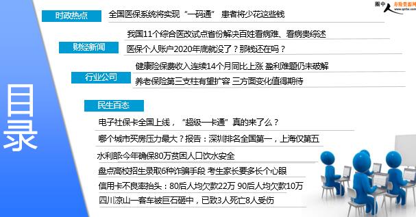 每日新闻速递 2019年6月29日 星期六 目录 时政热点 财经新闻 行业公司 民生百态 全国医保系统将实现“一码通” 患者将少花这些钱 我国11个综合医改试点省份解决百姓看病难、看病贵综述 医保个人账户2020年底就没了?那钱还在吗? 健康险保费收入连续14个月同比上涨 盈利难题仍未破解 养老保险第三支柱有望扩容 三方面变化值得期待 电子社保卡全国上线,“超级一卡通”真的来了么? 哪个城市买房压力最大?报告:深圳排名全国第一,上海仅第五 水利部:今年确保80万贫困人口饮水安全 盘点高校招生录取6种诈骗手段 考生家长要多长个心眼 信用卡不良率抬头:80后人均欠款22万 90后人均欠款10万 四川凉山一客车被巨石砸中,已致3人死亡8人受伤 时政热点 全国医保系统将实现“一码通” 患者将少花这些钱 2019-06-28 11:29 来源:中国新闻 27日,国家医保局在北京召开医保信息化和标准化建设座谈会。记者从会上了解到,从医保信息化建设情况看,长期以来全国存在标准代码不一致、信息系统碎片化严重、医保公共服务水平参差不齐、医保大数据应用不充分等问题。为建立全国统一的医保信息业务编码体系,推动形成全国自上而下医保信息数据交换的“通用语言”,国家医保局去年8月启动了医保疾病诊断和手术操作、药品等15项主要业务信息编码的研究制定工作。目前,国家医保局已完成医保疾病诊断与手术操作、药品、医用耗材、医疗服务项目等4项核心编码标准的规则制定、数据库建设和动态维护窗口搭建工作。 财经新闻 我国11个综合医改试点省份解决百姓看病难、看病贵综述 2019-06-28 07:10 来源:光明日报 医改,在全球范围内都是一道难题。其难,足以令人望而却步——它意味着诸多重大利益和政策的调整,牵一发而动全身。每一项改革措施的出台,都不容有失。这注定使启动于2009年的医改,广受社会关注。医疗是民生之需。当前,我国仍然面临多重疾病威胁并存、多种健康影响因素交织的复杂局面。然而,民生牵着民心,哪怕一路荆棘,也要勇往直前。正如郑板桥的《竹石》所云,千磨万击还坚劲,任尔东西南北风。2015年2月和2016年5月,我国先后确定了两批共11个省份作为综合医改试点省份。为了解决百姓“看病难、看病贵”的现状,四年多来,安徽、福建、陕西、青海、四川、江苏等11个省份“咬定青山不放松”,勇于探索,亮点频出。