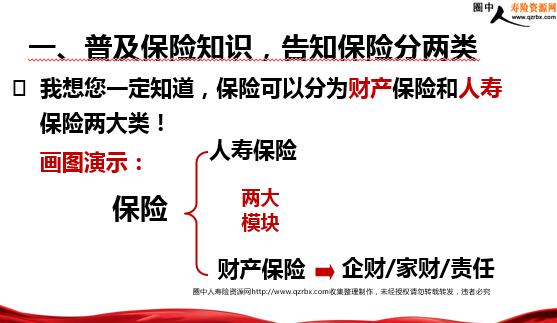 客户需求诊断面谈 快速、准确诊断客户需求 我的主要客户群—— 第一部分—— 讲自己,获得客户认同 进入保险行业前—— 寻求改变—— 结缘保险—— 年八年,销售+创业 不断学习,追求成长—— 脉网 第二部分—— 讲公司,打消客户疑虑 发现 提升 分享 复制 1.公司网点覆盖面广(1/2) xx人寿您可能听得不多,我简单跟您介绍一下吧提问互动导入:我们公司在全国有35家省级分公 司,您知道省级分公司是什么概念吗?比如整个 xx省范围内有好几十个机构和网点,但是只能 算一家分公司。那xx也是如此。 发现 提升 分享 复制 2.公司网点覆盖面广(2/2) 发现 提升 分享 复制 3.市场排名(1/2) 发现 提升 分享 复制 3.市场排名(2/2) 第三部分—— 客户需求诊断面谈 具体步骤 一、普及保险知识,告知保险分两类 二、介绍人寿保险人身保障功能 三、介绍人寿保险资产保全功能 四、运用一个提问诊断需求 保险两大类! 画图演示: 保险 企财/家财/责任 人寿保险 两大 模块 财产保险 无论客户如何回答,接下来提问: 题吗?