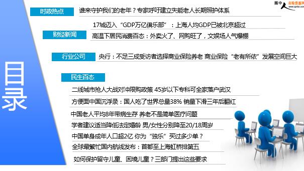 每日新闻速递 2019年8月5日 星期一 目录 时政热点 财经新闻 行业公司 民生百态 谁来守护我们的老年?专家呼吁建立失能老人长期照护体系 17城迈入“GDP万亿俱乐部”:上海人均GDP已被北京超过 高温下居民消费百态:外卖火了、网购旺了,文娱场人气爆棚 央行:不足三成受访者选择商业保险养老 商业保险“老有所依”发展空间巨大 二线城市抢人大战对冲限购政策 45岁以下专科可全家落户武汉 方便面中国沉浮录:国人吃了世界总量38% 销量下滑三年后翻红 中国老人平均8年带病生存 养老不是简单医疗问题 学者建议适当降低法定婚龄 男/女性分别降至20/18周岁 中国单身成年人口超2亿 你为“独乐”买过多少单? 全球最繁忙国内航线发布:首都至上海虹桥排第五 如何保护留守儿童、困境儿童?三部门提出这些要求 时政热点 谁来守护我们的老年?专家呼吁建立失能老人长期照护体系 2019-08-04 05:26 来源:光明网 随着我国人口老龄化快速发展,老年健康服务需求不断增加。国家卫生健康委员会指出,当前我国老年健康服务供给严重不足,在老年照护、安宁疗护等方面还无法满足老年人的迫切需求。近日,国务院印发《国务院关于实施健康中国行动的意见》,其中提出要健全老年健康服务体系,完善居家和社区养老政策,推进医养结合,探索长期护理保险制度,打造老年宜居环境,实现健康老龄化。到2022年和2030年,65至74岁老年人失能发生率有所下降,65岁及以上人群老年期痴呆患病率增速下降。 财经新闻 17城迈入“GDP万亿俱乐部”:上海人均GDP已被北京超过 2019-08-02 18:18 来源:南方都市报 时间来到下半年,全国各大城市都陆续公布了上半年国民经济发展情况,一线城市中深圳和广州GDP增长均突破7%,其中深圳达到7.4%,成为一大亮点。而新一线城市中,成都、武汉、南京、长沙等城市动能强劲,经济增速均突破8%。政道君梳理了去年GDP过万亿的17城(佛山接近万亿)今年上半年GDP数据,发现从GDP增速来看,成都和长沙领跑,均为8.2%,天津则在17城中最低,仅4.6%。17城上半年GDP增速,以成都和长沙最高,为8.2%,武汉和南京达到8.1%。最低的是天津,只有4.6%的增长,比全国的平均水平低了不少。天津自数据挤水分以来,一直处于“刮骨疗毒”状态,最低增速曾跌到1.9%,目前正处于缓慢回升通道。