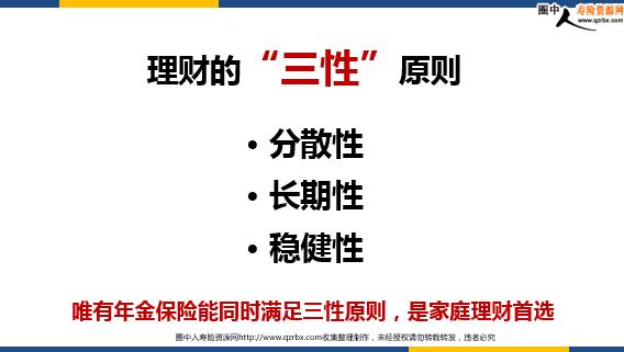 年金险销售的形与魂 一、我对年金险的认识 二、中高端群体,我的客户定位 三、中高端群体的经营 目录 什么是理财? 理财是根据个人或家庭的资产、收入状况、人生阶段、风险偏好等,确定 中长期财务规划目标,通过银行、证券、保险、基金等金融产品组合,制定科 学的、合理的、可操作性的方案,经过实施后最终达成目标。 所谓理财,就是追求长期而稳定的收益。它不同于投资,更和投机无关。投资 理财 常用理财工具 银行理财产品 保险 储蓄 房产 股票基金 理财的“三性”原则 · 分散性 · 长期性 · 稳健性 唯有年金保险能同时满足三性原则,是家庭理财首选 一、我对理财险的认识 二、中高端群体,我的客户定位 三、中高端群体的经营 目录 了解中高端群体 方可持续获得加保和转介绍 · 要走进中高端群体,必须要有 客户定位 · 要成为他们