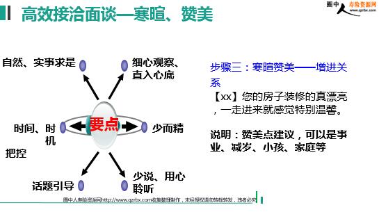 如何首次高效接洽 2019 什么是首次接洽面谈 ? 是指售后服务专员接收到服务单后,首次拜访面见服务单客户,收集资料并确立服务关系的过程。 为什么要高效? 什么是高效? 怎么做到高效? 为什么要做到高效? 提高伙伴接洽成功率提高伙伴拜访自信心提高伙伴行业留存率提高伙伴孤单使用率 为什么要高效? 什么是高效? 怎么做到高效? 有效与高效的区别 有效:坐下来,谈得拢高效:短时间内建立融洽的关系,信息收集全 高效接洽面谈的标准 1、取得客户信任; 2、收集客户资料; 3、为二次拜访做好铺垫。 接洽前的准备接洽流程 怎么做到高效?——接洽前 客户信息分析好 第一印象塑造好 行销工具准备好 拜访心态调整好 客户信息分析好 住址职业手机号码购买情况 --- 第一印象主要是根据对方的表情、姿态、身体、仪表和服装等形成的印象。 第一印象塑造好 第一印象的重要性 加拿大心理学家的一项研究发现,第一印象具有持久性。也就是说,第一印象所形成的认识将持久的主导人们对待另一个人或事物的看法,即便人们在后来的交往中对此人或事物具有了新的认识,第一印象所产生的看法依然不会消失。