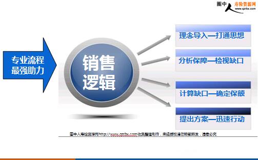 打开理念沟通 持续健康销售 销售逻辑 理念导入—打通思想 分析保障—检视缺口 计算缺口—确定保额 提出方案—迅速行动 专业流程最强助力 销售逻辑 理念导入—打通思想 分析保障—检视缺口 计算缺口—确定保额 提出方案—迅速行动 专业流程最强助力 理念导入—打通思想 业: 我们每个人对美满家庭生活都有美好的憧憬,一生平安幸福,但这一切都需要建立在我们的生活不因任何原因而改变的前提下。您说是吗?但现实的问题是总有一些我们个人无法预料的情况发生而使得我们美好幸福的生活被打断。不知道您的身边是否有这样的事情发生? 理念导入—打通思想 业:其实我们的人生就像左边的图显示的那样,赚钱一阵子,花钱一辈子,真正有财富积累的时间,不过短短的30多年,也就是这30多年的财富支撑着我们幸福安康的生活,但是疾病和意外就像两个恶魔一样,无论哪种情形发生都可能让我们的财富遭受损失,从而使我们的人生计划没有办法实现,您说是吗? 销售逻辑 理念导入—打通思想 分析保障—检视缺口 计算缺口—确定保额 提出方案—迅速行动 专业流程最强助力 分析保障缺口 业: 尤其是疾病风险对人生的影响为严重,特别是重大疾病花费尤其巨大。据英国统计数据显示42岁即进入大病高发期,一旦发生大病有一个5年生存期的概念,即如果重大疾病患者经治疗后能生存5年以上,即可认为被治愈的可能性为90%以上,即可被认作治愈。