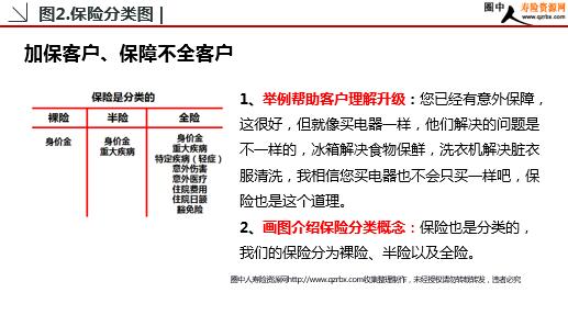销售技能强化(1.画图讲观念) 客户接洽 保障型产品销售逻辑讲解 促成沟通要点 寒暄赞美 客户加保无保障客户百万医疗当月生日客户等等 主促管销售逻辑介绍 | 幸福快车 疾病 意外 收入 1、人生是走上坡路:首先说说我们的生活,其实保险跟我们的生活是息息相关的。幸福的人生就像是在走上坡路。 2、家庭四个阶段:根据家庭的不同起步,这个可以分为四个阶段:温饱、一般、小康、富裕(加入互动,请问您目前处于什么样的状态…)(画出四个状态) 3、家庭职责引入,增加同理心:我们每个家庭都有一辆幸福快车,这辆幸福的快车住着我们的父母、配偶、子女。每个家庭都有一个一家之主,那么一家之主在家庭中担任什么样的职责呢?那就是拉着我们幸福快车奔向富裕的顶点。随着我们一家之主技能的成长和收入的提高,我们奔向富裕山顶的脚步将越来越快,那是不是我们每个家庭都会达到富裕的顶峰呢?答案是不确定的! 为什么要投保、加保 图1.爬坡图 | 幸福快车 疾病 意外 收入