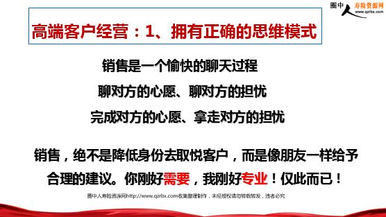 高端客户养老需求下 社区销售 大纲 一、开发高端客户的缘由二、高端人群的养老需求与社区销售理念转变三、养老社区讲解促成技巧 我的销售案例:2019年1月份(4个客户5单佣金12万) 为何要锁定中高端客户群 业务人员层次越来越高客户专业度越来越高 同样的付出 客户不同 结果不同富人再穷也比穷人富 每月6件3000元,保费20000万 月佣金7000元 一年8万4 3月1件,10年缴保费30万 季度佣金60000元 一年24万 佣金差三倍 你愿意选哪一种? 高端人群的养老需求与社区销售理念转变 中国老龄化社会背景: —中国老龄化社会现阶段情况分析 1950年起金字塔般的人口年龄结构逐步向不规则的锯齿形演变,劳动力人口的迅速减少,同时老年人口比例的迅速增长。 1950年以来的三次婴儿潮后,人口老龄化趋势明显。再结合生育率等数据来看,当前我国人口增长模式已是三低态势,即低生育率、低死亡率、低增长率态势。老龄化步伐的加快,被称为“银发经济”的老年产业呈现蓬勃发展之势。未来将拥有数以亿计的消费群体,养老产业将成为“朝阳产业”。 人口趋势:三低态势和三大高峰迎来“银发浪潮” 高品质养老需求人群画像 数据来源:2017中国高净值人群医养需求调研 中国老龄化社会背景: —中国老龄化社会现阶段情况分析 中国养老在政策、资金储 备、服务资源以及服务能力 等方面,均处于较为基础的 阶段(如中国养老金储备约 为GDP的6%,美国养老金 规模为GDP的150%) 传统养老呈现“纺锤形 ”,以疾病治疗为核心, “健康管理”和“康复” 两头功能比较薄弱 养老涉及产业链长,与医疗、健康管理、护理甚至文化等领域都相关,政府或者大财团的主导力不足,难以全面满足需求,该产业需求人群面临选择困难。