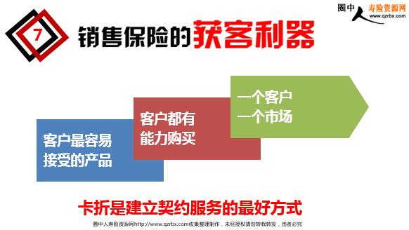 队伍是干基础是根业务是果 短险销售是各级管理者必须了解并重视的事 短险 长险 对管理层而言 保险中,唯短险“保费低,保障大”!任何年龄段都适用,一顿饭的钱保障365天安心 伙伴易开口,客户意接受 根据大数据显示 ,卡折拜访客户成交率为10% 新客户 转介绍 保险意识 保险理赔 250定律:美国著名推销员乔·吉拉德在商战中总结出了“250定律”每一位顾客身后,大体有250名亲朋好友。卡折易于成交的特点,有利于客户的积累。 1张卡折=250个准客户卡折是佣金最高的险种 被熟悉首佣之王…… 首佣x% 全佣x% 每年x% 上不封顶 被忽略的全佣之王…… 20年交xx佣金: x%+x%+x%+x%+x%=x% 卡折佣金: x%*20年=x%(20年后持续每年x%...) 佣金收入对比: 年年新单 年年首佣 卡折佣金比例高达2倍!! 成功案例 xx(xx) 自动续期,轻松过考核,躺着也是赚 短险客户签单期交寿险签单率42%>一般客户签单率25%-30% 坚持每周2卡,累积下来,你也可以成为第二位xx! 成功案例 根据公司历史数据显示,目前卡折的理赔率10% 养成一定销售卡折习惯,客户理赔需求要求客户服务,客户服务量带来出席率。 活动量决定卡折量,卡折量决定出席率 新人留存容易!据有关机构统计分析30万个业务员的留存情况发现:每月4件短期险卡折单留存率达