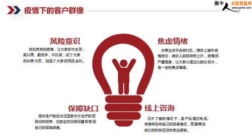 新冠疫情期间的我思与我做 疫情下的客户群像 保障缺口 线上咨询 邀约技巧 产品切入 xx语音直播分享 xx老师作为业界大咖,在直播中把他专业的知识通过风趣幽默的形式表达出来,得到了客户朋友的高度认可。比如提到疫情期间我们要关注自己的财富安全,更要注重自己的人身安全,人身安全需要通过保险来保驾护航,感染力极强。xx老师的直播是我们給客户进一步打通保险理念的神器。语音直播结束后,我又发了一波红包,将群内氛围推向高潮,为我开讲产品做了铺垫。 xx语音直播分享 产品直播 xx老师授课结束后,客户开始在群内主动咨询产品,更多的客户则是怕影响到别人听语音,通过私信在向我咨询产品。本次微产会,我是带着为客户服务的真心建群为大家服务。不仅能给客户带去安全感,还给保险宣传带去了便利,调动了从众性。 产品直播 重点向客户介绍了公司最新重疾升级政策和拓展责任,新老客户都能够获得相关利好,让客户感受到我们公司的专业的服务意识和卓越的服务水平。 产品直播 开场白之后,我开始将产品图片发在群内,同时开始语音直播,逐一向客户介绍悦享安康、乐意享、百万护家几款产品,介绍了目前投保的便捷性,让大家在疫情期间能够多一点保障,为自己的人生保驾护航。 总监的使命担当 疫情当前,团队如何生存、如何发展 作为总监,我要对我的团队负责。疫情之下我们没法面见客户,给我的展业带来了极大的困扰。我需要以身作则,率先举办微产会来破冰,为大家作出表率作用。通过经验分享,总结出一套行之有效的流程和方法,帮助我的团队伙伴来举办微产会。 SKA的重要性 我是5G终身白金会员,一直坚持奉行着公司的SKA理念和文化,SKA已经持续整整131个月在客户不幸罹患重疾时,立马通过绿色通道上报理赔信息,不到3天60余万的理赔款就已经打入客户的账户中