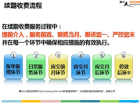 个险营销的永续经营 ——续期 续期之重 续期之道 续期之荣 公司的品牌 公司的利益 公司竞争力 续期 保费 长期经营之根本 内涵价值之体现 低继续率的公司不是竞争对手! 对公司的重要性 持续的保障和收益 彰显客户为中心理念 提高客户满意度 对客户的重要性 续佣 续保优质奖 复效利益 考核 客户经营(加保、转介绍、增员) 荣誉体系 ........ 没有续保率的队伍是一盘散沙! 续期可以很好地平衡首期业务波动的风险! 收入和稳定 品质与永续经营 对队伍的重要性 绩效薪资 考核 行业口碑 职业生涯 零容忍