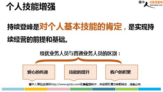 培养登峰习惯奠定寿险事业 登峰是什么 是一种习惯: 结论:养成登峰好习惯,助力他人,做前行路上的灯塔 月月登峰,养成好习惯,久而久之你会发现,你身边越来越多的人会受你的影响。 登峰的意义 结论:坚持登峰会让生活更有品质 提高收入的保证: 持续登峰是对金钱的追逐是保证最低收入的基础和前提 人生价值的体现: 结论:养成登峰的习惯、不断超越、实现梦想 持续登峰可以获得额外的奖励、登上舞台、赢得荣誉、鲜花与掌声。 登峰的意义 收入稳—稳定的收入,稳定的团队有价值—个人从事寿险价值的体现机会多—参加更多的培训活动机会技能强—持续登峰带来技能的提升习惯好—养成好习惯,工作高效便捷 登峰的意义 价值的体现 登峰会员是长期优秀最直接的体现,1峰、2峰…9峰、顶尖,持续奋斗,持续优秀,永无止境! 对自己寿险事业的价值证明 角色特别:不一样的身份,不一样的待遇 爱心大使:每个月至少把2份保障送去给两个家庭 在xx,登峰是最好的成长方式