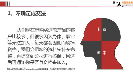 在与客户交谈的过程中,客户的语音与动作细节往往会表现出购买信号,那么到底哪些是属于购买的信号呢? 思 考 精明的业务员学格外注重细节,有很强的敏锐力,有着对细节的捕捉能力. 我勒个区 而这些能力大多都是通过后天的学习与经验的积累形成的。 所有业务员必须钻研客户的各类细节的内在意思。 当客户很关心产品或服务的细节时 价格是多少?有优惠吗? XXX病可以报销吗?对产品细节的询问!理赔时麻烦吗?多少天理赔?让我仔细考虑一下吧! 当客户不断地认同你的看法时 你说的有道理你说的我明白我也是这样认为的医疗费用的确是很高。。。。。。 在回答或解决完客户的一个异议后 你的回答我很满意,但我还是要考虑一下对你们公司有基本的了解了原来是这样的,我明白了你们的计划原来是这么回事,你看可不可以发一些关于这个计划的资料给我我还是觉得价格有点高,考虑一下再给你回吧。。。。。。 当客户对某一点表现出浓厚的兴趣时 你们的产品有哪些优点?我拿笔记一下。。。。。。 当客户听完解释后保持沉默时 可以适时地提出几个问题,如果没有回答我们的问题,应果断地促成您看还有哪些方面不清楚?对我们公司的情况您没有什么不清楚的地吧?。。。。。。 察觉购买信息后如何进行促成?