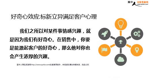 保险销售心理效应助你了解客户 目录 CONTENTS 心理上引导客户的意义 销售中你必须要知道的心理效应 为什么有些销售员一见面就能获得客户的好感? 为什么有些销售员一说话就能吸引客户的注意? 为什么有些销售员一微笑就能打动客户的心? 销售心理效应 那我们该怎么做呢? 首先,我们要清楚! 保险产品不是一般的商业消费品,保险是事关客户生老病死的重要产品! 保险销售心理效应 所以,作为保险销售员,我们应该怀着一颗真诚的服务心去服务客户! 特别的爱给特别的你。 在销售中,身为销售员的你要时时掌握主动权,如果你在同客户的交谈中跟着客户的思路走了,那么呢的这次销售活动也就“危险”了,如何才能步步为营,获得成交机会,那么,通过了解九个心理效应,将有助于你掌握被客户喜欢的技巧,从而实现你的销售目的。 保险销售心理效应 亲和力效应:亲和力让你贴近客户 用微笑面对客户与客户成为朋友自信的人最具有亲和力 首因效应:自信是推销自己的法宝 首因效应也叫首次效应、优先效应或“第一印象”效应。它是指当人们第一次与某物或某人相接触时会留下深刻的印象。 快乐效应:快乐心理带来快乐销售 所谓快乐效应是指在销售中销售员用自己的快乐心态去感染客户,那么客户也会因为你的快乐而快乐,那时候,你做的就是快乐销售,因而更能受客户欢迎。 开场白效应:抓住客户的心 唤起客户的好奇心找出产品的价值所在吸引客户的注意力真诚地关心客户从第三者处获得支持寻找共同的话题对客户表示感谢