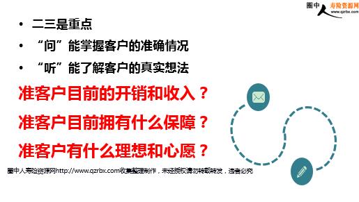 教你如何让“没钱”的客户买保险 客户总是说“没钱买保险” 真的没钱买保险吗 面对客户以“我没钱”为由的拒绝,我们到底该如何解决?是果断放弃还是视为销售时自然有的抗拒反应? 你知道我没钱背后的真相吗? 1、并不了解保险的好处; 2、自我防卫的心理作用; 3、真的没有购买力; 4、天生抗拒改变; 5、害怕做出错误的决定。 保险销售心理学研究表明准客户从一开始就摆出拒人千里之外的姿态,很多时候并不一定是要拒绝营销员或保险,而是出于人类的一种对无知的事物的恐惧本性,或者仅仅是想抗拒营销员对其所带来的变化或烦扰,仅此而已! 客户一时的拒绝并不代表永远的否认或抗拒,它仅仅表明客户没有立即同意,而客户其实想表达的是:给我一个购买的理由! 俗话说嫌货才是买货人 资深营销员应该都明白经历过,那些全程都客客气气的准客户往往最后都不会购买,而那些一直发表不同意见的才是最后真正购买的。所以客户拒绝时,我们应该高兴,因为保险销售的契机已经来到! 教你如何让“没钱”的客户买保险 如何让“没钱”的客户买保险? 一讲二问三听 二三是重点 “问”能掌握客户的准确情况 “听”能了解客户的真实想法准客户目前的开销和收入?准客户目前拥有什么保障?准客户有什么理想和心愿? 第四部分 点击在此输入你的标题内容 准客户:收入刚好够用,没钱买保险营销员:请问您认为今时今日的市场行情好吗?假如明天上班时老板告诉您现在行情不好,有两个选择:1.补1个月的薪水,自动辞职;2.降薪10%,等行情好时再加薪。请问您会做什么选择?少了10%的收入,您应该还可以勉强应付,但假如少了100%的收入,您的家庭将如何承受呢?因此建议您不如将10%的收入开一个账户,有病时是医药费,没病可成为将来的退休养老金,并确保您的家人可安心自在地生活。 私房话术 找准突破口有的放矢 熟识客户 “您怎么会没钱呢?真是说笑啦!” “您事业做的这么好,说没钱也没人会信啊!” “我可不是来借钱的啦!” 不熟识客户从时事话题切入,适时导入保险,让其明白保险的重要性