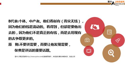 高额保单营销技巧 今日学习目标: 了解高额保单销售详情学习高额保单营销技巧 高额保单为何少?-不敢卖? 不要把对方看成特殊的人。 高额保单销售技巧 高贵的外表、配件让你更显专业。 你就是有钱人。 聊天让你成交大保单。 一样的险种、一样的利益,我凭什么找你买保险? 不推销牛排,推销滋滋声!一样是代步工具,他为什么选奥迪而不是选奥拓? ·有人喜欢玫瑰,但是有人不喜欢,因为它有刺,你是看到它哪一面,美丽的还是丑陋的?玫瑰还有它价值所在:爱情的见证. 培养老板心态寻找老板感觉建立老板形象结交老板朋友走进老板圈子 寻找高端客户的理由与好处 80%的财富掌握在20%的人手上同样的工作十倍的收入竞争对象很少 寻找高端客户的理由与好处 成功概率高可以延伸大单结交成功人士 大老板关心什么? 他们十之八九都是白手起家的,这些人做起事来,往往不顾一切,企业是他心血的结晶,事业是他全部的生命,说穿了,这些大老板,希望走了以后把自己的事业留下来,作为永恒的纪念碑,当然这些老板最不想走。因此我们第一个要做的事,就是要让他明白:人难免一死。大老板的另一个特点是喜欢支配别人怎么做,他高高在上,对自己决定的能力很有信心。而你仔细分析,他大部分决定是靠灵感做出来的,很少是经过理性的思考。这样一来,这种人跟别人的沟通往往变成单向沟通而不是一般所说的对话。大老板的人际关系, 心理状态分析 ...........