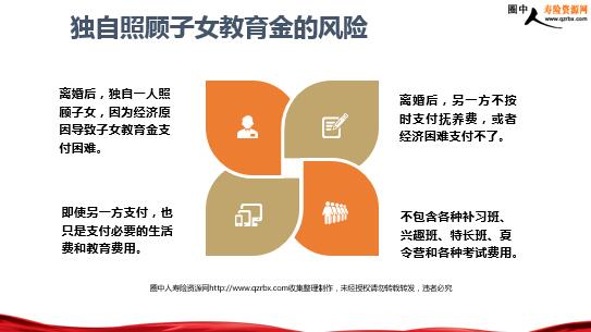 年金险销售场景解析 —子女教育 目录 年金险的特点与优势年金险的功用 教育金需求引导教育金面谈话术教育金保单设计 赡养父母无忧06 新形势下客户财富目标 1、保险期间一般以年度为时间节点,可以为客户提供一笔长期稳定的现金流,满足客户需求。 2、年金保险返还金额的多少,一般与投保的保额成正比例关系,一旦投保可以锁定收益,无惧市场变动。 3、多数年金保险除了固定收益外,通过附加万能账户提升收益,同时通过附加万能账户,可以将年金变相转给投保人。 4、具有强制储蓄的功能,达成家庭重要财富目标的有利工具。 5、高现价灵活使用保单资金,低现价有利于风险资产的保护。 年金保险的特点与优势 1、作为客户给子女的教育基金,防止债务以及婚姻的影响 2、作为客户给子女的婚前财产,防止婚后被共同财产混同 3、作为给客户自己的养老基金,防止法律风险以及被篡夺 4、作为客户给子女的传承资产,防止子女挥霍以及被篡夺 年金保险的功用 年金险满足客户需求 客户要的是解决人生各个阶段的风险问题,年金保险就是解决这些风险的金融工具。 成长无忧 婚姻不愁 老有所养 传承有方 目录 年金险的特点与优势年金险的功用 教育金需求引导教育金面谈话术教育金保单设计 教育金存在的风险 风险一父母人身风险导致没有充足教育金的风险 风险二父母收入中断导致没有充足教育金的风险 风险三父母因为债务纠纷导致教育金被用偿债的风险 12岁男孩独自办理父亲的死亡证明:备好证明去孤儿院