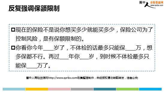 满额销售法专题训练满额定义 总公司核保规则中最高免体检重疾保额 什么是“满额”—— “满额销售”的意义 让每一次成交价值最大化 客户——保障更高业务员——产能更高 以xx公司为例(第六组) 注:具体体检内容xx个险均有提示(字母为体检类别) 多少是“满额”? 各机构按照自己的核保要求修改 反复强调保额限制