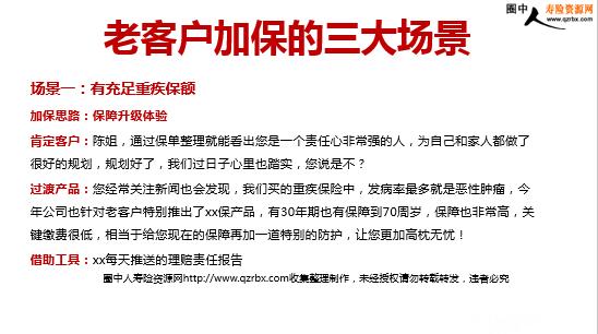 成功签单两步走 成功签单两步走-列名单 列名单,盘点客户 客户中心 寿险、车险、老客户、准客户、转介绍...... 目标客户 重疾不足类目标客户少儿保障类目标客户 黄金宝典 查看销售线索 列出名单 列出有购买或加保空间的客户名单在名单旁边标注拜访的日期提前规划好客户的购买计划 成功签单两步走-列名单 成功签单两步走-列名单 第一次列了200个名单 按照家庭保障缺口盘点出136件保单 按照50%的成交率可以完成68件 成功签单两步走-分类 第二梯队客户已有保障产品,但是保额过低或者保障不足 帮助客户进行保障需求分析,老客户加保 第三梯队综拓客户、黄金宝典客户 服务导入,未雨绸缪,打通客户理念,家庭保单进行促成 重点获取高质量转介绍名单 第一梯队客户已购买保障产品,保障全面 老客户的特点 信任度保险意识强个人家庭状况及收入了解兴趣、爱好、性格了解 成功签单两步走-分类之老客户加保 我们的担忧—— 客户刚买过保险,短期内不会再加保了客户刚买,我不好意思开口 成功签单两步走-分类之老客户加保 老客户加保—— 成本低效率高回报高