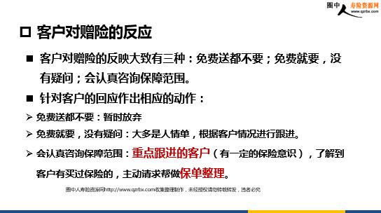 赠险助我成长含备注 赠险就像是我在保险行业的一张名片,尤其是对新人,我需要传递信息给我的朋友和客户赠险是成本最低的拓客工具,同时也可以获得公司奖励为后续见面跟进创造机会 我对于赠险的认知 利于我对客户进行分类,识别准客户可以获得公司方案奖励,借力达成目标可以更好地跟客户切入保险观念,开发保单 送赠险对自己的好处 赠险的对象 个人朋友:有稳定的工作,家里有小孩,有一定的经济条件亲人:父母双方的亲人有共同爱好的朋友:篮球群以前的同事:公司的同事和客户以往的客户:过往工作中有业务往来的客户 我是如何跟客户讲赠险的 XX先生,我现在在xx人寿上班,公司现在有一个送赠险的活动,这款赠险主要是针对个人的小额意外医疗,发生意外,接受治疗后,100以上500以下的医疗费用都可以按照80%进行报销。 个人的朋友,开门见山,直接进入主题: 我现在在保险公司上班,公司现在有份赠险是免费的的,比如我之前打球扭到脚,然后去医院看,产生医疗费用后,100以上500以下的医疗费用都可以按照80%进行报销。 篮球群的朋友: 客户对赠险的反应 客户对赠险的反映大致有三种:免费送都不要;免费就要,没有疑问;会认真咨询保障范围。针对客户的回应作出相应的动作:免费送都不要:暂时放弃免费就要,没有疑问:大多是人情单,根据客户情况进行跟进。会认真咨询保障范围:重点跟进的客户(有一定的保险意识),了解到客户有买过保险的,主动请求帮做保单整理。 对赠险客户进行分类识别,筛选出准客户:认真咨询保障范围的客户直接问客户有没有买过保险,买过的:要求主动帮做保单整理,找到客户保障缺口。没买过的:直接介绍我们公司的产品—xx 赠险客户筛选 对没买过保险的利用保险阶梯图讲保险 我们身边存在很多风险,例如:意外、疾病、财产风险等。我以前的一个同事,因为疾病在公司发轻松筹,这都是我们经常的案例。所以每个家庭都需要备有保险,而我们买保险的顺序应该是:意外险→重疾险→养老险→子女教育。先家庭支柱后小孩。
