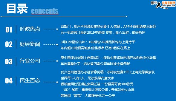 每日新闻速递 2021年3月23日 星期二 目录 时政热点 财经新闻 行业公司 民生百态 四部门:用户不同意收集非必要个人信息,APP不得拒绝基本服务 五一机票预订量达2019年两倍 专家:放心出游,做好防护 3月LPR报价出炉:1年期与5年期品种均与上月持平 年内超10地提高城乡低保标准 还有8省份在路上 原中国保监会副主席周延礼:保险业要坚持市场开放和数字化转型 车改重磅处罚:吉林省四家公司车险被全省停新,综改后全省停新机构增至5家! 反兴奋剂管理办法征求意见稿:涉药被禁赛1年以上将无缘国家队 世界每3人有1人,无法获得安全饮水 假核酸阴性证明在多国泛滥 一份最高可卖300欧元 “8D”城市!重庆现大波浪公路,开车如坐过山车 韩国闹“葱荒” 大葱涨至43元一公斤 时政热点 四部门:用户不同意收集非必要个人信息,APP不得拒绝基本服务 2021-03-22 12:06:25 来源:工信微报 国家互联网信息办公室、工业和信息化部、公安部、国家市场监督管理总局近日联合印发《常见类型移动互联网应用程序必要个人信息范围规定》,明确移动互联网应用程序(APP)运营者不得因用户不同意收集非必要个人信息,而拒绝用户使用APP基本功能服务。《规定》明确了39种常见类型APP的必要个人信息范围,将自今年5月1日起施行。 五一机票预订量达2019年两倍 专家:放心出游,做好防护 2021-03-22 10:15:54 来源:齐鲁晚报 据央视报道称,清明五一假期前后一些热门方向十分抢手。其中,北京西站到武汉站用时仅需4个多小时的高铁列车,车票瞬间抢没;开抢不到5分钟,北京西站到郑州东站的29趟列车已无余票。 除了铁路,目前航空等交通人数也在逐渐攀升。3月16日至20日,首都机场共起降航班5428架次,运送旅客68.3万人次,客流量环比上周同期提升了50.71%。数据显示,目前五一期间出行的机票预订量已经达到2019年同期的2倍。清明、五一的搜索量较高的热门航线,以北京、上海、广州、深圳出港至西南的成都、重庆航线同比增幅最多。旅游航线目的地前往云南的同比增幅最多。