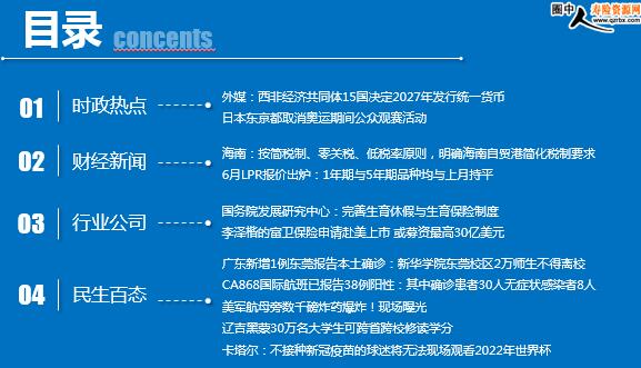 每日新闻速递保险公司2021年6月22日早会用.ppt