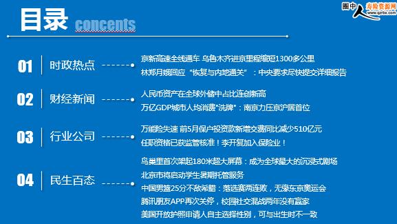 每日新闻速递 2021年7月3日 星期六 目录 时政热点 财经新闻 行业公司 民生百态 京新高速全线通车 乌鲁木齐进京里程缩短1300多公里 林郑月娥回应“恢复与内地通关”:中央要求尽快提交详细报告 人民币资产在全球外储中占比连创新高 万亿GDP城市人均消费"洗牌":南京力压京沪居首位 万能险失速 前5月保户投资款新增交费同比减少510亿元 任职资格已获监管核准!李开复加入保险业! 鸟巢里首次架起180米超大屏幕:成为全球最大的沉浸式剧场 北京市将启动学生暑期托管服务 中国男篮25分不敌希腊:落选赛两连败,无缘东京奥运会 腾讯朋友APP再次关停,校园社交混战两年没有赢家 美国开放护照申请人自主选择性别,可与出生时不一致 时政热点 京新高速全线通车 乌鲁木齐进京里程缩短1300多公里 2021-06-30 16:49:39 来源:交通运输部 6月30日,京新高速梧桐大泉至木垒段515公里建成顺利通车,打通了京新高速的“最后一公里”,京新高速全线通车。 京新高速梧桐大泉至木垒段是北京-乌鲁木齐高速公路的最后一段,全长515公里,采用双向四车道高速公路标准设计,设计时速120公里/小时,是新疆采用PPP模式实施的第一条通车运营的高速公路,由中国铁建投资集团投资兴建,也是全国一次性开通里程最长的经营性高速公路。 林郑月娥回应“恢复与内地通关”:中央要求尽快提交详细报告 2021-07-02 09:42 来源: 界面新闻 7月2日凌晨,香港特区政府网发布新闻公报,公布香港特区行政长官林郑月娥从北京返抵香港后,在香港国际机场会见传媒的发言。 林郑月娥表示,这次上北京主要是出席庆祝中国共产党成立100周年的活动,但亦有机会见过港澳办的高级官员,也提出了香港在控制疫情方面取得一些良好的进展。虽然今日我刚刚收到消息又有一个本地个案,但我仍强烈反映了香港商界、香港市民都希望能够早日跟内地恢复人员的往来;中央亦要求我尽快交一个详细的报告,我希望稍后有一些进展。
