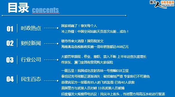 每日新闻速递 2021年7月5日 星期一 目录 时政热点 财经新闻 行业公司 民生百态 国家明确了!事关每个人 冲上热搜!中国空间站航天员首次出舱,成功! 楼市传来大消息!国务院发文 海南离岛免税新政实施一周年销售额达468亿元 大额罚单频现,停业、撤职、禁入不断 上半年这些灰度增长 传京东、厦门金圆有意竞购大家保险 一箭五星!我国成功发射吉林一号宽幅01B卫星 泰坦尼克号残骸正逐渐消失:破损腐蚀严重 专家称已不可避免 菲律宾军方一架载有85人的飞机坠毁 已有40人获救 美国警方与武装人员对峙 11名武装人员被捕 印度爆发大规模停电抗议!民众冲上街头,当地警方用高压水枪进行驱逐 时政热点 国家明确了!事关每个人 2021-07-04 16:49:39 来源:三亚发布 据国家发改委官网消息,为加快构建强大公共卫生体系,推动优质医疗资源扩容和区域均衡布局,提高全方位全周期健康服务与保障能力,促进中医药传承创新,国家发展改革委、国家卫生健康委、国家中医药管理局和国家疾病预防控制局近日共同编制《“十四五”优质高效医疗卫生服务体系建设实施方案》提到, 力争实现每个地市都有三甲医院,服务人口超过100万的县有达到城市三级医院硬件设施和服务能力的县级医院。 《方案》提出, 到2025年,基本建成体系完整、布局合理、分工明确、功能互补、密切协作、运行高效、富有韧性的优质高效整合型医疗卫生服务体系。 冲上热搜!中国空间站航天员首次出舱,成功! 2021-07-04 09:42 来源:新浪财经 据中国载人航天工程办公室消息,北京时间2021年7月4日8时11分,航天员刘伯明成功开启天和核心舱节点舱出舱舱门。 截至11时02分,航天员刘伯明、汤洪波身着中国自主研制的新一代“飞天”舱外航天服,已先后从天和核心舱节点舱成功出舱,并已完成在机械臂上安装脚限位器和舱外工作台等工作,后续将在机械臂支持下,相互配合开展空间站舱外有关设备组装等作业。期间,在舱内的航天员聂海胜配合支持两名出舱航天员开展舱外操作。