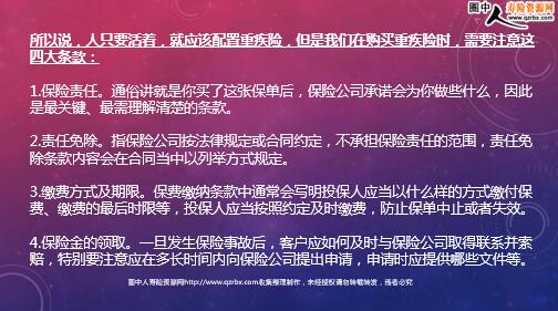 重疾推销策略 保险现在已经成为我们生活的一部分了。尤其是经历了这次疫情之后,很多人深刻认识到了健康的宝贵,更理解了保险的价值。健康一日不可或缺,保险也不是可有可无。保险的种类很多,如果只能选一种,我们该怎么选择?答案是:人只要活着,就应该配置重疾险。有人说重疾险很坑,为什么还有那么多人买?看完这篇文章你就知道了。 重疾险保什么?重疾险,即大家平常说的“大病险”,是“重大疾病保险”的简称。保的是保险条款约定的重大疾病,当被保险人所患疾病符合理赔条件时,保险公司一次性赔一笔钱。这笔钱的数目跟花多少医疗费无关,跟在社保或其他地方报销了多少钱也没有关系,只跟我们买的重疾险保额是多少有关系,不管买多少份,合计保额有多少,赔多少。备注:2020年11月5日,中国保险行业协会与中国医师协会正式发布《重大疾病保险的疾病定义使用规范(2020年修订版)》。新规对2007年制定的重大疾病保险的疾病进行了修订,主要有优化分类、增加病种数量、扩展疾病定义范围三大变化,将于2021年2月1日起正式生效。新规将原有25种重疾定义完善扩展为“28种重疾+3种轻疾” 重度疾病类型增加了严重慢性呼吸衰竭、严重克罗恩病、严重溃疡性结肠炎3种,并首次引入轻度疾病定义,将恶性肿瘤、急性心肌梗死、脑中风后遗症3种核心疾病,按照严重程度分为重度疾病和轻度疾病两级。此外,新规还扩展了对重大器官移植术、冠状动脉搭桥术、心脏瓣膜手术、主动脉手术等8种疾病的保障范围,完善优化了严重慢性肾衰竭等7种疾病定义,理赔进一步规范。 为什么一定要买重疾险?现在社会的污染太严重,人们生存的环境日益恶劣,食品安全问题过分严峻,加上生活节奏快、压力大、习惯差、遗传等因素,重疾的发生率越来越高。据卫生部资料显示,国内居民一生中罹患重疾的几率高达72.17%而最近某保险公司发布了一份理赔报告指出,在2020年保险赔付中,重疾险赔付金额是最高的。一旦被确诊为重大疾病,不仅要承受生理上的痛苦,还可能会面临经济上的困难。 重大疾病重大疾病对家庭经济有哪些影响?有一个“冰山说”很有意思。说的是:一场重疾就好像是海面上漂浮的一座冰山,海平面以上的是我们显而易见的。而海平面以下的大部分,我们都忽视了。那到底重疾会有哪些损失呢?首先最容易想到的。就是手术和治疗费用,这是直接损失,少则十几万,多则几十万甚至上百万。但是看不到的,冰层下面的隐形经济损失,可能更多。一方面,大部分患者在确诊为重疾时病情已经很严重,已不能再从事原有工作,将丧失部分或全部经济收入;另一方面,其家人也会因为陪护而影响到正常的生活和工作,经济收入也会受到一定的影响。这会给个人和家庭带来巨大的经济压力,甚至造成因病致贫、因病返贫。相关数据显示,我国因病致贫、返贫人口占贫困总人口四成以上。重疾险带来哪些保障重疾险的根本目的是向罹患重疾的被保险人提供经济帮助,以降低重疾对个人或家庭财务造成的巨大伤害。一份重疾险,最基本能解决这四项经济负担:1.医疗费用重大疾病治疗费用之高是我们有目共睹的,而除了支付医疗费用外,还会产生大量的关联开支和额外开支,这是通过社保不能报销的。比如肾衰竭,我们找肾源的过程需要花钱,找到肾源需要花钱购买,所以在治疗重疾的道路上,并不仅仅是医疗费那么简单。重疾险是一经确诊即给付,不受社保是否报销的限制,赔付款可以用来支付所有医疗费用开支,能够帮助患者家庭全面解决医疗费用压力。
