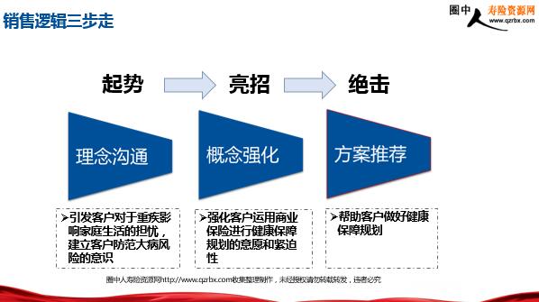 重疾险模拟销售逻辑三步走 场景一: 0岁男孩小宝,父母工薪阶层,家庭年收入20万元。父母比较关注孩子保障,请为小宝做一份健康保障计划。要求:结合客户实际情况制定计划;有场景展示;有销售逻辑;有产品介绍。 场景二: 王先生,企业白领,年收入50万。比较关注自身保障,请为王先生量身定制一份健康保障计划。要求:结合客户实际情况制定计划;有场景展示;有销售逻辑;有产品介绍。 销售逻辑三步走 理念沟通 概念强化 方案推荐 引发客户对于重疾影响家庭生活的担忧,建立客户防范大病风险的意识 强化客户运用商业保险进行健康保障规划的意愿和紧迫性 帮助客户做好健康保障规划 起势 亮招 绝击