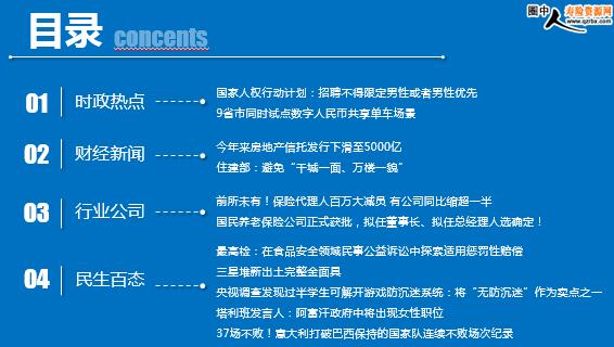 每日新闻速递 2021年9月10日 星期五 目录 时政热点 财经新闻 行业公司 民生百态 头条新闻 国家人权行动计划:招聘不得限定男性或者男性优先 9省市同时试点数字人民币共享单车场景 今年来房地产信托发行下滑至5000亿 住建部:避免“千城一面、万楼一貌” 前所未有!保险代理人百万大减员 有公司同比缩超一半 国民养老保险公司正式获批,拟任董事长、拟任总经理人选确定! 最高检:在食品安全领域民事公益诉讼中探索适用惩罚性赔偿 三星堆新出土完整金面具 央视调查发现过半学生可解开游戏防沉迷系统:部分店铺将“无防沉迷”作为卖点之一 塔利班发言人:阿富汗政府中将出现女性职位 37场不败!意大利打破巴西保持的国家队连续不败场次纪录 时政热点 国家人权行动计划:招聘不得限定男性或者男性优先 2021-09-09 10:01:01 来源:中国青年网 国务院新闻办公室9日发布《国家人权行动计划(2021-2025年)》。行动计划指出,保障妇女平等就业权利。消除就业性别歧视。规范招聘行为,用人单位在招聘过程中,除国家另有规定外,不得限定男性或者规定男性优先。将就业性别歧视问题纳入劳动保障监察工作之中。对涉嫌就业性别歧视的用人单位开展联合约谈。 9省市同时试点数字人民币共享单车场景 2021-09-07 14:37 来源:央广网 9月9日,北京、上海、深圳等9个省市同时试点美团共享单车支付场景,这也是迄今为止数字人民币在更广泛的区域范围中试点。