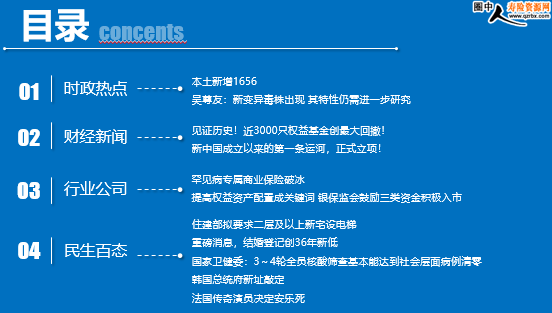 每日新闻速递 2022年3月21日 星期一 目录 时政热点 财经新闻 行业公司 民生百态 本土新增1656 吴尊友:新变异毒株出现 其特性仍需进一步研究 见证历史!近3000只权益基金创最大回撤! 新中国成立以来的第一条运河,正式立项! 罕见病专属商业保险破冰 提高权益资产配置成关键词 银保监会鼓励三类资金积极入市 住建部拟要求二层及以上新宅设电梯 重磅消息,结婚登记创36年新低 国家卫健委:3~4轮全员核酸筛查基本能达到社会层面病例清零 韩国总统府新址敲定 法国传奇演员决定安乐死 时政热点 本土新增1656 2022-03-20 09:58 来源:澎湃新闻 3月19日0—24时,31个省(自治区、直辖市)和新疆生产建设兵团报告新增确诊病例1737例。其中境外输入病例81例,含15例由无症状感染者转为确诊病例;本土病例1656例。 吴尊友:新变异毒株出现 其特性仍需进一步研究 2022-03-20 10:47 来源:陕西法制网 中国疾控中心流行病学首席专家吴尊友表示,最近世界卫生组织确实证实了一个新的毒株的出现,这个新的毒株是一个病人同时感染德尔塔和奥密克戎,两种毒株重组而成的一个新的变异毒株。现在发现报告这种毒株的主要是欧洲的几个国家,而且报告病例数也只有几十例。从这些有限的数据来看,无论是流行病学还是临床表现,还没有观察到有显著的变化,它和德尔塔、奥密克戎原来的毒株比较近似。但是由于新的毒株出现的时间比较短,而且病例数比较少,致病性、传染性以及对疫苗的逃逸能力等,现在都没有办法做出结论。
