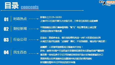 每日新闻速递 2022年4月23日 星期六 目录 时政热点 财经新闻 行业公司 民生百态 新增本土2119+16383 上海4月22日起开展九大攻坚行动,力争早日实现社会面清零 中国首艘自主航行集装箱商船“智飞”号在青岛港上线运营 全国货运物流平稳恢复 证监会:鼓励养老金、银行保险等机构进一步扩大权益投资比例 水滴百万医疗险首推“点滴赔”模式:不设免赔额,增加用户满足感! 超震撼!人民海军首部航母主题宣传片发布! 研究:接种3针国产灭活疫苗可显著降低奥密克戎患者疾病严重程度 福岛第一核电站将于25日开始铺设排放核污染水的海底隧道放水口 美国将推出世界首艘完全由氢燃料电池驱动的商用渡轮 新冠重组毒株XE已开始在西班牙传播 时政热点 新增本土2119+16383 2022-04-22 08:59 来源:澎湃新闻 4月21日0—24时,31个省(自治区、直辖市)和新疆生产建设兵团报告新增确诊病例2133例。其中境外输入病例14例,含3例由无症状感染者转为确诊病例;本土病例2119例,含202例由无症状感染者转为确诊病例。新增死亡病例11例,均为本土病例,均在上海;无新增疑似病例。 31个省(自治区、直辖市)和新疆生产建设兵团报告新增无症状感染者16465例,其中境外输入82例,本土16383例。 上海4月22日起开展九大攻坚行动,力争早日实现社会面清零 2022-04-21 09:59 来源:澎湃新闻 根据上海市委市政府部署,全市将从4月22日起开展社会面清零攻坚九大行动,力争早日全市实现社会面清零。根据“统一指挥、分类施策、集中攻坚”的总体思路,集中利用一段时间,采取“全域静态管理、全员检测筛查、全面流调排查、全民清洁消杀、全程查漏补缺”措施,做到“应检尽检、应隔尽隔、应收尽收、应治尽治”。