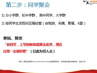 缘故增员的对象好处及同学帮增员步骤 增员对象的主要来源 增员的渠道 缘故法 招聘 转介绍 现有客户 电话增员 随机盲打 人才市场 网络 街道居委会 村委会 缘故增员的好处 市场大,机会多,随时随地成本低,效果好,日常渗透选择准确,标准明确易于管理,配合默契增员整合,实现共赢 缘故增员其实很简单:多一份用心,多一份简单和坚持 亲戚朋友 同学同乡 同事、曾经的合作伙伴、及竞争对手 校友、战友 共同爱好者 街坊邻居 子女学校的老师、校长、同学家长 平时消费的对象(小卖部、干洗店等) 缘故准增员开拓对象 您 筛一筛,把“好对象”找出来 建库要求:请大家拿出自己的《准增员100》,对照增员标准条件,对准员100人员进行评估,挑选出30位最好最快的准增员对象。填写《准增员30表》 面谈导入 关键点:产生动摇、激发不满 问近况及现状、问理想、问收入通过聆听判断增员的困扰与不满(增员点)帮助被增员对象分析困扰与不满产生原因鼓励增员主动求变提出困扰与不满的解决方案(寿险营销)给予增员信心切入说明 x年开始组建xx团队, x月任组经理,团队x人 x月任高级组经理,团队x人, x月任资深组经理,团队x人 x月任处经理,团队x人 x月团队突破x人一年时间x人 x人 缘故增员成功案例一华丽转身当主管 团队前后一年保费及收入对比 xx同学帮组织架构 建立同学“帮” 那你的同学帮呢? 我的同学帮里都有哪些人选呢? ...........