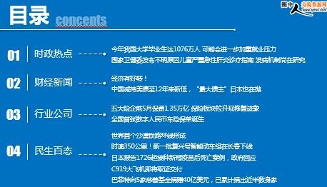 每日新闻速递 2022年6月17日 星期五 目录 时政热点 财经新闻 行业公司 民生百态 今年我国大学毕业生达1076万人 可能会进一步加重就业压力 国家卫健委发布不明原因儿童严重急性肝炎诊疗指南 发病机制尚在研究 经济有好转! 中国减持美债至12年来新低,“最大债主”日本也在抛 五大险企前5月保费1.35万亿 保险板块拉升现修复迹象 全国首张数字人民币车险保单诞生 世界首个沙漠铁路环线形成 时速350公里!新一批复兴号智能动车组在长春下线 日本报告1726起接种新冠疫苗后死亡案例,政府回应 C919大飞机即将取证交付 巴菲特向5家慈善基金捐赠40亿美元,已累计捐出近半数身家 时政热点 今年我国大学毕业生达1076万人 可能会进一步加重就业压力 2022-06-15 14:12 来源:中国网直播 国务院新闻办公室于2022年6月15日上午10时举行新闻发布会,请国家统计局新闻发言人、国民经济综合统计司司长付凌晖说:我们看到,5月份,16-24岁年轻人的失业率是18.4%,比上月上升了0.2个百分点。今年我国大学毕业生达到1076万人,随着毕业季的到来,大学毕业生集中进入劳动力市场,可能会进一步加重就业压力。 国家卫健委发布不明原因儿童严重急性肝炎诊疗指南 发病机制尚在研究 2022-06-16 14:08 来源:环球网 2022年3月以来,全球多个国家和地区报告了不明原因儿童严重急性肝炎。目前该病病因不明,我国暂无相关病例报告。为提前做好医疗救治准备,国家卫生健康委组织制定了《不明原因儿童严重急性肝炎诊疗指南(试行)》。