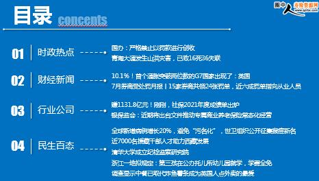每日新闻速递 2022年8月19日 星期五 目录 时政热点 财经新闻 行业公司 民生百态 国办:严格禁止以罚款进行创收 青海大通发生山洪灾害,已致16死36失联 10.1%!首个通胀突破两位数的G7国家出现了:英国 7月券商受处罚月报丨15家券商共领24张罚单,近六成罚单指向从业人员 赚1131.8亿元!刚刚,社保2021年度成绩单出炉 银保监会:近期将出台文件推动专属商业养老保险常态化经营 全球新增病例增长20%,避免“污名化”,世卫组织公开征集猴痘新名 近7000名援藏干部人才助力西藏发展 清华大学成立纪检监察研究院 浙江一地拟规定:第三孩在公办托儿所幼儿园就学,学费全免 调查显示中餐已取代炸鱼薯条成为英国人点外卖的最爱 时政热点 国办:严格禁止以罚款进行创收 2022-08-17 13:41 来源:澎湃新闻 8月17日,国务院办公厅发布《关于进一步规范行政裁量权基准制定和管理工作的意见》。《意见》提出,要准确规定行政裁量权基准内容,依法合理细化具体情节、量化罚款幅度,坚决避免乱罚款,严格禁止以罚款进行创收,严格禁止以罚款数额进行排名或者作为绩效考核的指标。 《意见》要求,罚款数额的从轻、一般、从重档次情形要明确具体,严格限定在法定幅度内,防止简单地一律就高或者就低处罚;罚款数额为一定金额的倍数的,要在最高倍数与最低倍数之间划分阶次;罚款数额有一定幅度的,要在最高额与最低额之间划分阶次,尽量压缩裁量空间。需要在法定处罚种类或幅度以下减轻处罚的,要严格进行评估,明确具体情节、适用条件和处罚标准。 青海大通发生山洪灾害,已致16死36失联 2022-08-18 11:34:40 来源:澎湃新闻 记者18日从大通县融媒体中心获悉,8月17日22时25分,青海省西宁市大通县发生瞬间强降雨,引发山洪,造成泥石流,致使河流改道、2个乡镇6个村1517户6245人受灾。经过进一步搜救核实,截至18日12时,已造成16人死亡,36人失联(之前通报的死亡4人、失联27人,经搜救确认,救出2人,新增死亡12人,新增失联23人)。 目前,已成立前方指挥部,组织武警、公安、应急、卫生等部门和乡村干部共计2000余人、车辆160余辆,发动周边群众,积极投入到抢险救灾工作中,救援工作正在有序推进,后续情况待报。
