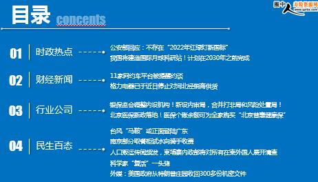 每日新闻速递 2022年8月24日 星期三 目录 时政热点 财经新闻 行业公司 民生百态 公安部回应:不存在“2022年红绿灯新国标” 我国将建造国际月球科研站!计划在2030年之前完成 11家网约车平台被提醒约谈 格力电器已于近日停止对河北经销商供货 银保监会调整内设机构!新设内审局,合并打非局和风险处置局! 北京医保新政落地!医保个账余额可为全家购买“北京普惠健康保” 台风“马鞍”或正面登陆广东 南京部分取餐柜试水向骑手收费 人口贩运传闻频发,柬埔寨内政部将对所有在柬外国人展开清查 科学家“复活”一头猪 外媒:美国政府从特朗普庄园收回300多份机密文件 时政热点 公安部回应:不存在“2022年红绿灯新国标” 2022-08-23 13:41 来源:每日商报 近日,网传“2022年将实施红绿灯新国标”,引发群众关注。22日晚,起草单位公安部交通管理科学研究所就有关情况作出说明:不存在“2022年红绿灯新国标”。 我国将建造国际月球科研站!计划在2030年之前完成 2022-08-23 11:34:40 来源:海峡网 据财联社报道,我国正在论证载人登月方案 ,不远的将来,中国航天员将有望登陆月球,后续还将建造国际月球科研站 ,而为了满足未来航天任务的需求,新一代载人火箭和重型火箭也正在研制当中。 据探月工程总设计师、中国工程院院士吴伟仁透露,探月工程四期经过多年论证,已于2021年底正式立项,进入实施阶段。 他提到:“探月工程四期的主要目标是对月球南极开展科学探测,建立起月球科研站的基本型。后续将分3次任务实施,分别是嫦娥六号、嫦娥七号和嫦娥八号,计划在2030年之前完成。目前研制工作进展顺利。”