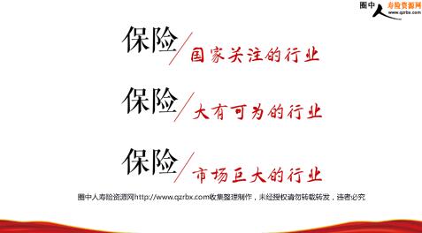 保险行业让更多人取得成功 为什么保险行业能让更多人取得成功 由国务院保监会-中国保险行业协会筹资亿元拍摄的系列广告《保险,让生活更美好》于2013年1月起在中央电视台和各大卫视的黄金时段陆续播出。为社会公众正面宣导,为行业发展加油助力。 2019银保监公众宣传语 能用一个月工资买保险,就别把一生积蓄给医院! “爱国爱家爱自己,从一份保障开始” 2013年9月1日,根据《国务院关于保险业改革发展的若干意见》,“将保险教育纳入中小学课程,发挥新闻媒体的正面宣传和引导作用,普及保险知识,提高全民风险和保险意识”要求,《保险伴我一生》已列入初中、高中教育课本。 发挥保险功能作用,是顺利推进“一带一路”战略的重要助力。保险业作为管理风险的特殊行业,自身特点决定了行业服务“一带一路”建设具有天然优势,为加快推进“一带一路”建设提供有力支撑。中国保监会《关于保险业服务“一带一路”建设的指导意见》 加快发展现代保险服务业,对完善现代金融体系、带动扩大社会就业、促进经济提质增效升级、创新社会治理方式、保障社会稳定运行、提升社会安全感、提高人民群众生活质量具有重要意义。 2018年3月20日上午十三届全国人大一次会议 人均有效保单:我国只有0.09张美国是0.87张,日本是1.57张,韩国是1.65张,台湾地区是2.4张 寿险人均保额:我国是0.5万元美国是44.3万元,日本是61.6万元,韩国是29.7万元,台湾地区是32.8万元 市场巨大 十年间中国百姓投资领域变化:保险由2006年的第三24.12%升到到2016年的第一位36.79%。 理财首选 高手之路 高手之路 新人班 新兵营 早会 公司活动 高手之路 收入从此大不同,掌声荣誉纷至沓来,走向人生更高峰 找到了更好的工作,收入从此改变,不再羡慕别人生活潇洒 了解了保险内幕,积累了广泛人脉,拥有了百万保障