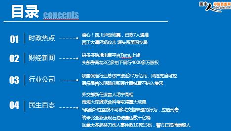 每日新闻速递 2022年9月6日 星期一 目录 时政热点 财经新闻 行业公司 民生百态 痛心!四川泸定地震,已致7人遇难 西工大遭网络攻击 源头系美国安局 拼多多跨境电商平台Temu上线 头部券商花3亿多拍下同行4000多万股权 我国保险行业总资产接近27万亿元,风险完全可控 医保局首次明确创新医疗器械暂不纳入集采 外交部新任发言人毛宁亮相 南海大深度联合科考取得重大成果 5类破坏性盗窃不可移动文物未遂的行为,应追刑责 纳米比亚新发现石油储量达数十亿桶 加拿大多起持刀伤人事件致10死15伤,警方正搜捕嫌疑人 时政热点 痛心!四川泸定地震,已致7人遇难 2022-09-05 16:14 来源:中国基金报 据川观新闻消息,9月5日下午,甘孜州人民政府新闻办召开新闻发布会,通报甘孜州泸定县6.8级地震相关情况。 目前地震已导致7人遇难。道路、通讯、房屋等受损情况正在核查中。 州级相关部门已派出武警、消防、医疗救治、通讯电力、交通保畅等救援力量635人开展抢险工作。 西工大遭网络攻击 源头系美国安局 2022-09-05 12:06 来源:澎湃新闻 5日,国家计算机病毒应急处理中心和360公司分别发布了关于西北工业大学遭受境外网络攻击的调查报告。调查中,国家计算机病毒应急处理中心和360公司联合组成技术团队,全程参与了此案的技术分析工作。技术团队先后从西北工业大学的多个信息系统和上网终端中提取到了多款木马样本,综合使用国内现有数据资源和分析手段,并得到了欧洲、南亚部分国家合作伙伴的通力支持,全面还原了相关攻击事件的总体概貌、技术特征、攻击武器、攻击路径和攻击源头,初步判明相关攻击活动源自美国国家安全局(NSA)“特定入侵行动办公室”(Office of Tailored Access Operation,简称TAO)。